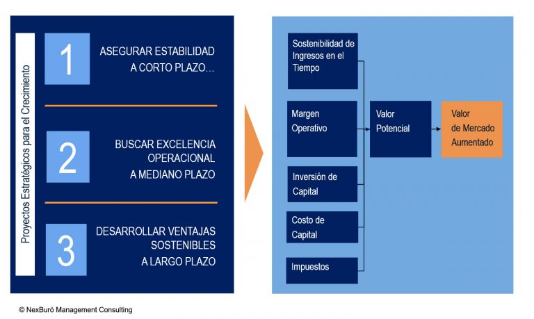 En este sentido Nexburó lo ayuda proporcionando herramientas avanzadas que le permiten visualizar variables y diseñar estrategias financieras que descubren todo el valor potencial de su negocio, guiándolo en el uso eficiente del capital disponible, mostrándole la manera de crecer sostenida y equilibradamente, de retribuir y motivar mejor a sus colaboradores y de cómo mover las palancas para crear retornos superiores para sus accionistas.