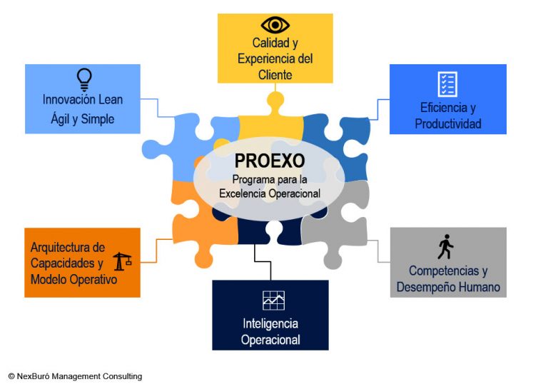 Nexburó como parte de su apoyo y compromiso, facilita y entrega a su empresa su metodología PROEXO, un conjunto de herramientas integradas que permiten innovar creativamente sus productos y procesos de negocio; desplegar de una manera ágil nuevas capacidades y el talento humano necesario para su operación eficiente y flexible, basándose siempre en hechos y datos valiosos que son compartidos por sus equipos de trabajo, sin descuidar la calidad y la productividad de los recursos utilizados.