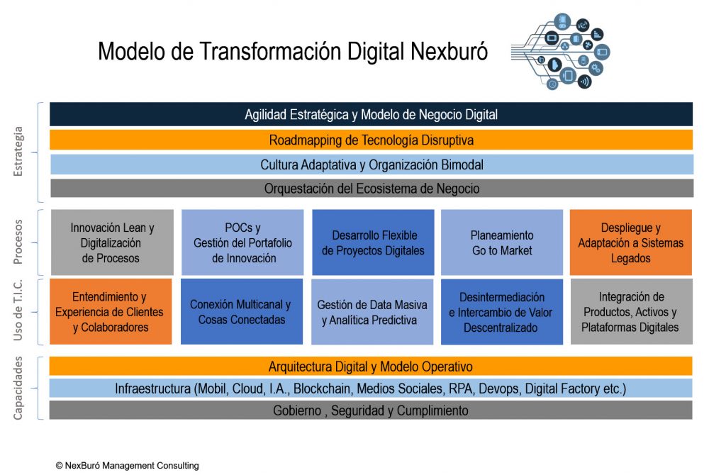 Ejecutar una estrategia de transformación digital requiere no solo el despliegue de tecnología disruptiva sino también la inversión en nuevos e innovadores modelos de negocio asociado. Esto es, cambiar la manera en que tradicionalmente gestionamos las operaciones; desplegar nuevos procesos digitales que trabajen con sistemas antiguos para producir servicios y productos también digitales, orientados a usuarios que buscan maneras más productivas de trabajar, que faciliten su trabajo y le brinden mejores experiencias con mayor valor.